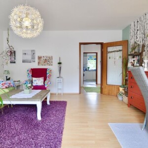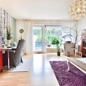 Über das Wohnzimmer gelangen Sie auf den Süd-West-Balkon mit Abendsonne und Blick ins Grüne.