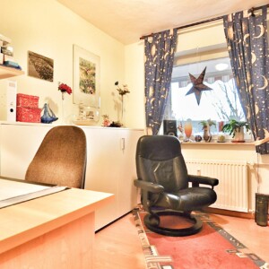 Beim Betreten des Hauses fällt sofort die Großzügigkeit der Raumgestaltung ins Auge. Sie betreten das Haus über ein weitläufiges Entree, von dem Sie sämtliche Räume im Erdgeschoss erreichen können. Neben einer Küche, die ausreichend Platz für einen Esstisch bietet, befindet sich ein ca. 15 m² großes Zimmer auf dieser Ebene. Dieser Raum kann beispielsweise als Büro oder Gästezimmer genutzt werden.