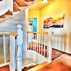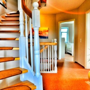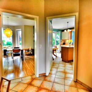 Bei der Grundriss-Gestaltung spüren Sie in jedem Raum die Liebe vom Bauherren zu seinem Eigenheim. Über einen kleinen Windfang erreichen Sie die Diele im Erdgeschoss mit angeschlossener Garderobe und Gäste-WC. Die Küche ist mit einer Einbauküche ausgestattet. Natürlich bietet die Küche ausreichend Platz, um mit der Familie dort zu essen. Über die Küche erreichen Sie den großen Hauswirtschaftsraum. Hier ist Platz für Vorräte, Waschmaschine, Trockner etc. Das Herzstück im Erdgeschoss bildet das fast 40 m² große Wohnzimmer. Ein Kamin sorgt im Winter für eine tolle Wohlfühlatomsphäre.